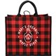 - The Buffalo Plaid Printed Jute Tote is perfect for any season.